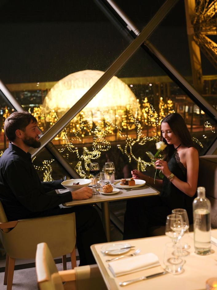 Depuis le premier étage de la tour Eiffel, ce restaurant pour la Saint-Valentin à Paris vous dévoile une vue imprenable sur les toits illuminés de la capitale. La Seine, quant à elle, serpente sous vos yeux entre les monuments emblématiques. La place animée du Trocadéro et, au loin, les gratte-ciel scintillants de la Défense, créent une toile de fond saisissante. Que vous soyez en tête-à-tête amoureux ou entouré de proches, ce dîner de Saint-Valentin à Paris invite à la contemplation, aux confidences et à une soirée romantique. Chaque instant célèbre l’amour dans un décor à couper le souffle.